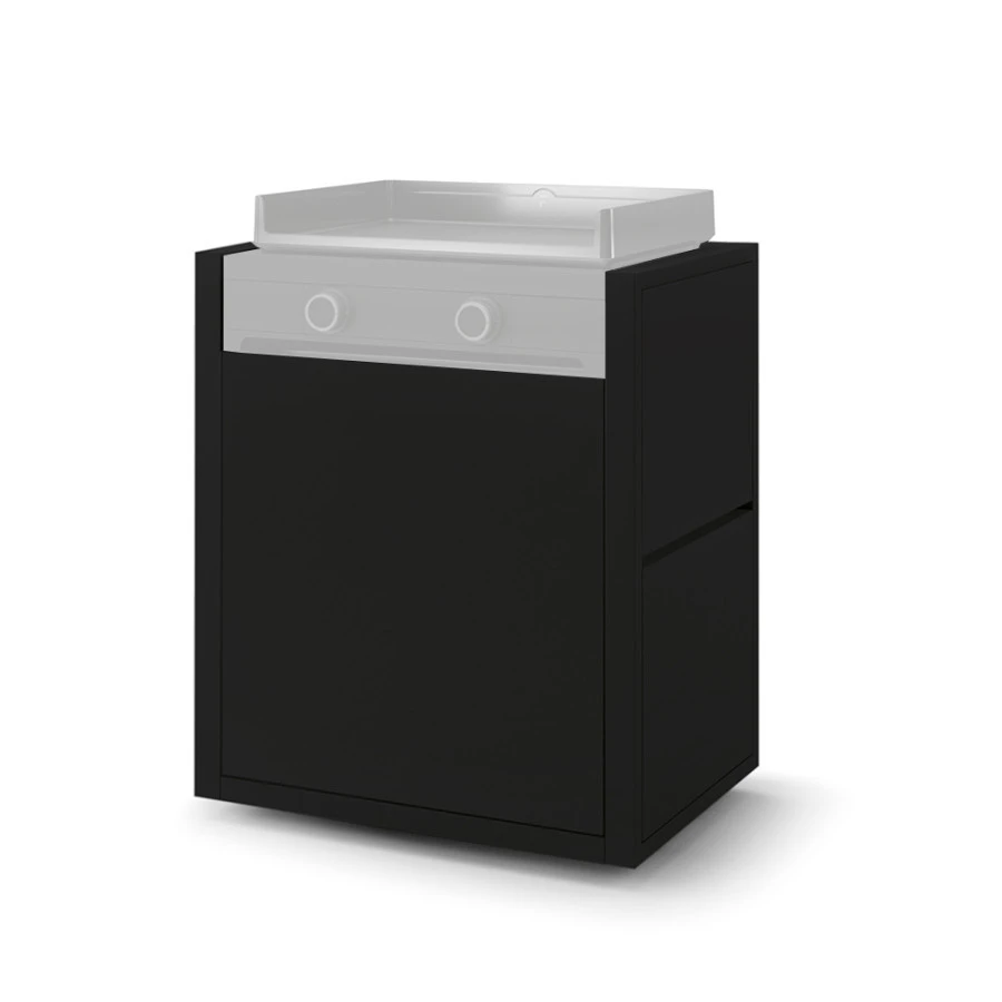 Cette desserte pour plancha mobile est entièrement en acier peint noir très robuste conçu pour résister aux conditions climatiques difficiles et aux agressions extérieures. Elle accueille parfaitement votre plancha Modern 60 pour transporter vos cuissons aux 4 coins d’un extérieur notamment à l’aide de 4 roues pivotantes avec frein. Deux tablettes rabattables sur vérin accueillent vos plats, ustensiles et épices. Profitez également d’un espace de rangement fermé par une porte avec système poussoir.